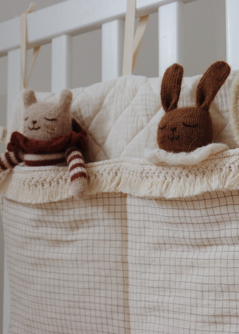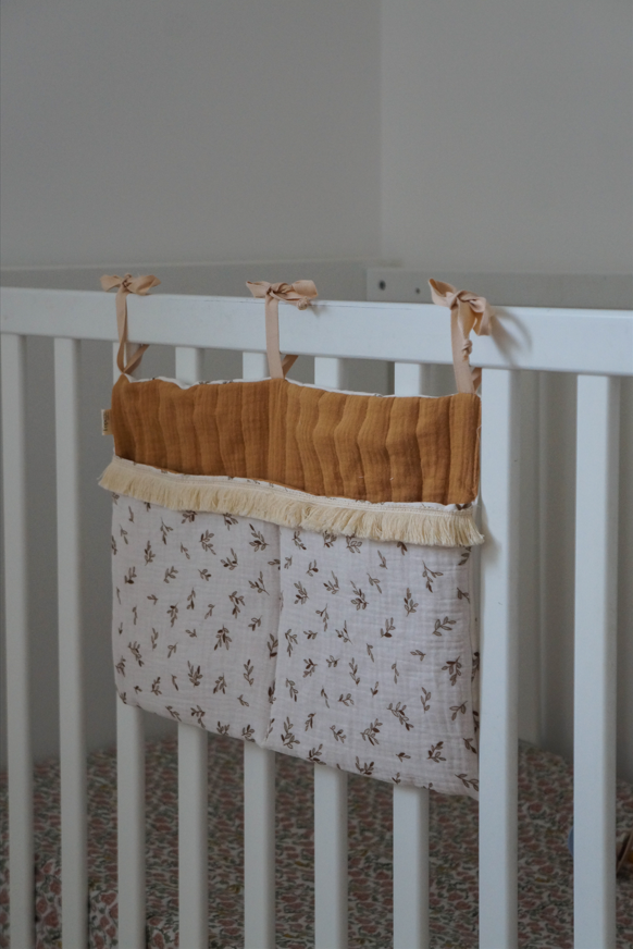 Cette jolie pochette de rangement s’attache au berceau de votre bébé ou même au lit des plus grands. Un indispensable au quotidien pour ranger les affaires : tétines, doudous, livres, ou encore ses jouets préférés.